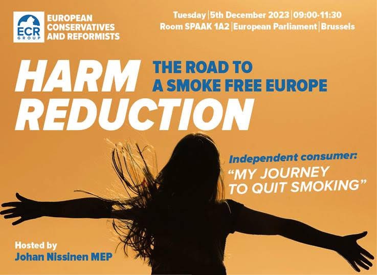 Marți, 5 decembrie, ETHRA și partenerii noștri din Sovape, Anesvap și NNA Irlanda au fost invitați de Parlamentul European la un eveniment găzduit de europarlamentarul Johann Nissinen. Evenimentul a fost intitulat „Reducerea daunelor – drumul către o Europă fără fumat” și a inclus susținători ai consumatorilor din Irlanda, Franța și Spania, precum și expertul în sănătate publică de la ETHRA, Clive Bates. Evenimentul s-a axat pe experiența consumatorilor în renunțarea la fumat cu produse mai sigure cu nicotină și pe rolul semnificativ pe care aceste alternative cu risc scăzut la fumat îl pot juca în atingerea obiectivului stabilit în Planul European de Combatere a Cancerului de a obține o UE fără fumat până în 2040.