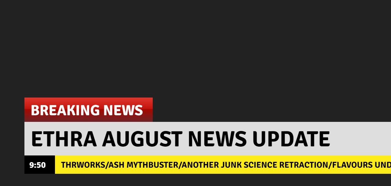 Rezumatul lunar al știrilor ETHRA: scrisoare ETHRA către SANT - CAPHRA Shadow Report - ASH Mythbuster - Consultare privind interzicerea aromelor de vapat in norvegia - Arome amenințate în reglementarea pouch-urilor cu nicotină - Raport german anti-THR pentru controlul tutunului - Studiul la scară largă constată (bineinteles) ca #THRworks. Citiți mai departe pentru mai multe